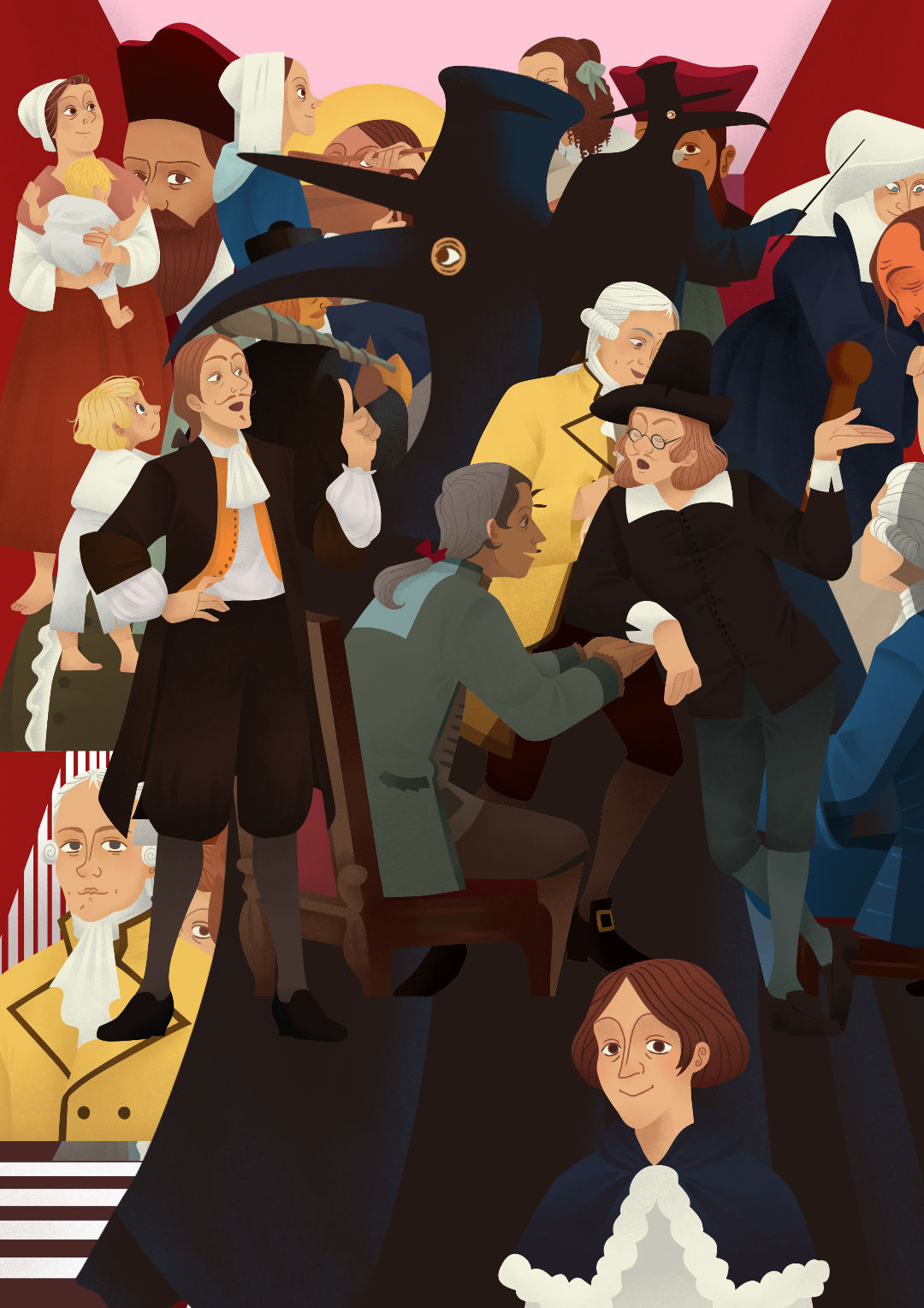 Les personnalités les plus illustres, telles qu’Arnaud de Villeneuve, Rabelais, Lapeyronie… deviennent les guides animés des utilisateurs au fil des grandes périodes de l’histoire.