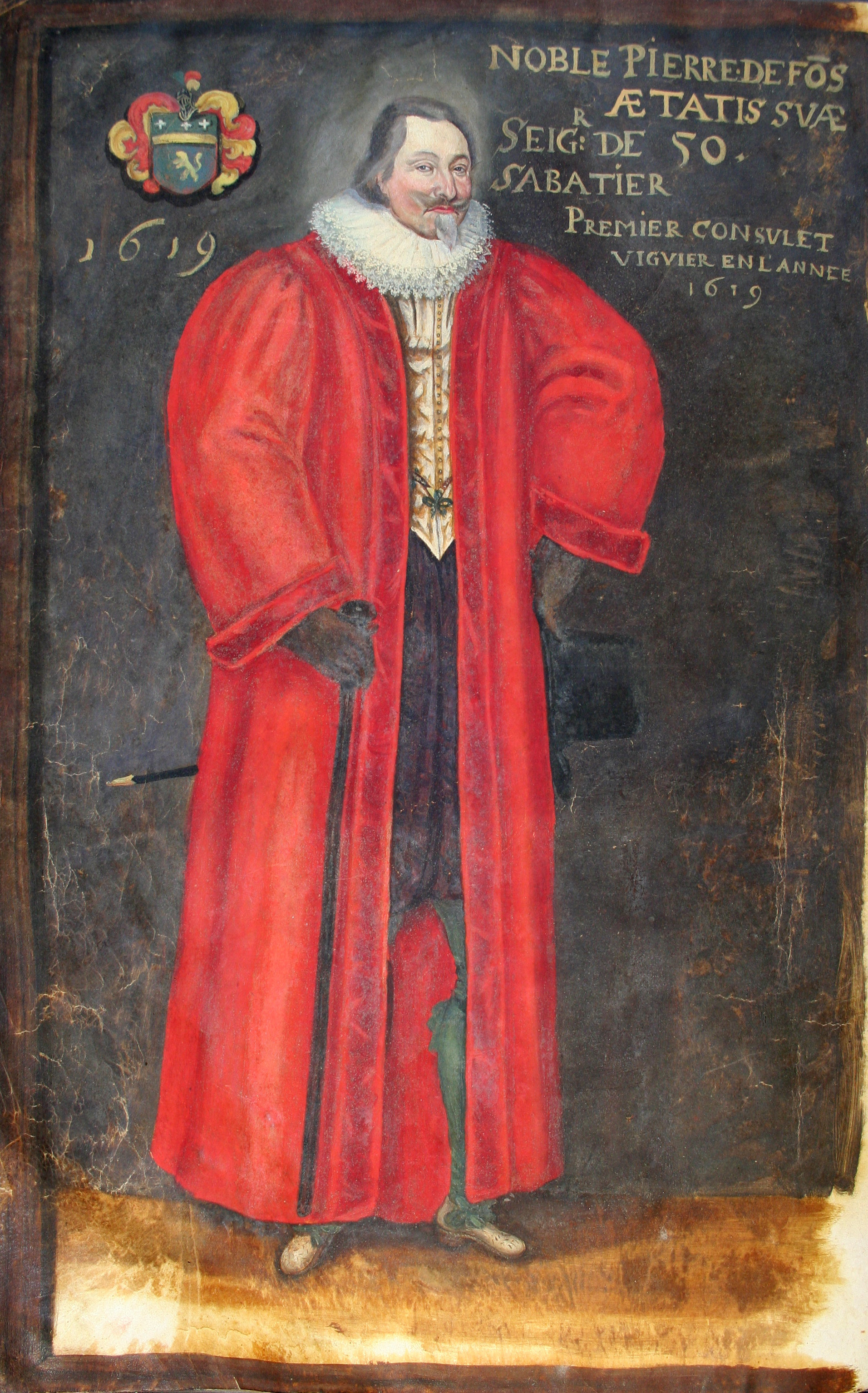 Le premier consul, c’est un noble de race, ou bien un docteur auquel le port de la robe revient de plein droit (il est gentilhomme d’épée ou homme de robe longue). Le deuxième est un bourgeois ou un patricien, qui peut vivre de ses rentes. Le troisième est un marchand, un procureur ou un notaire. Le quatrième est aussi un marchand, mais plutôt dans le genre petit commerçant, tel qu’épicier, etc. Le cinquième est un artisan. Le sixième est soit un vigneron, soit un cultivateur de champs ou de vignes. Le premier consul est escorté en permanence par des valets de la ville vêtus aux couleurs de celle-ci et porteurs de hallebardes. Pour aller à l’église et pour assister à d’autres festivités, les consuls, sans distinction entre eux, doivent toujours porter une robe rouge cramoisie qui descend jusqu’à la cheville ; et, sur l’épaule droite, un chaperon de même couleur. Le chaperon a presque la forme d’un bas : en haut, un rond roulé en boudin, comme certains chez nous en portent à la partie supérieure de leurs jambières. Aux jours ordinaires, les consuls portent simplement une longue robe noire. Même dans ce cas pourtant, ils doivent garder sur l’épaule le chaperon rouge des jours de cérémonie. À en croire certains, cette parure représente une corde de potence. Ce serait une façon de dire que la ville tout entière, dans le temps, avait fauté. Du coup, le roi aurait imposé une peine éternelle aux consuls : à savoir qu’ils devaient porter, en perpétuelle mémoire, et de tout temps, ce boudin rond à leur chaperon comme un carcan sur leurs épaules. Quant à moi, j’ai le sentiment que ce chaperon ne signifie qu’une seule chose : à savoir que ces consuls doivent être honorés avant les autres citoyens de la ville, exactement comme le sont les femmes, qui ont le droit, elles aussi, de porter un chaperon sur la tête.
