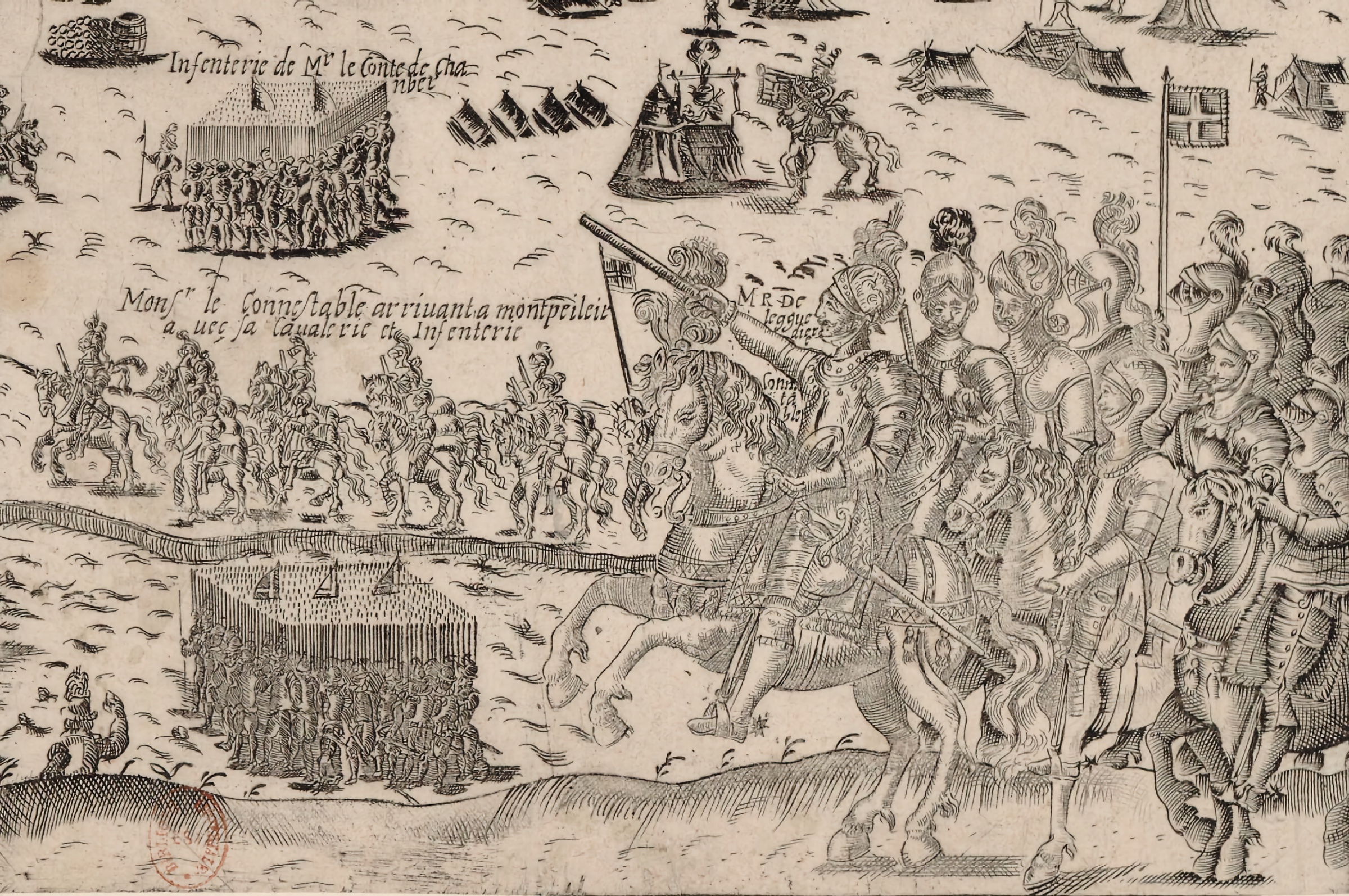 Nous voicy donc dans le siège qui peut estre conté dès le 30e d’aoust parce que ce jour-là M. de Rohan estant parti pour s’en retourner à Nismes aveq ceux qui l’avoient accompagné en venant, les troupes du Roy qui estoient toutes du costé de La Vérune se vindrent loger plus près à Castelnau.