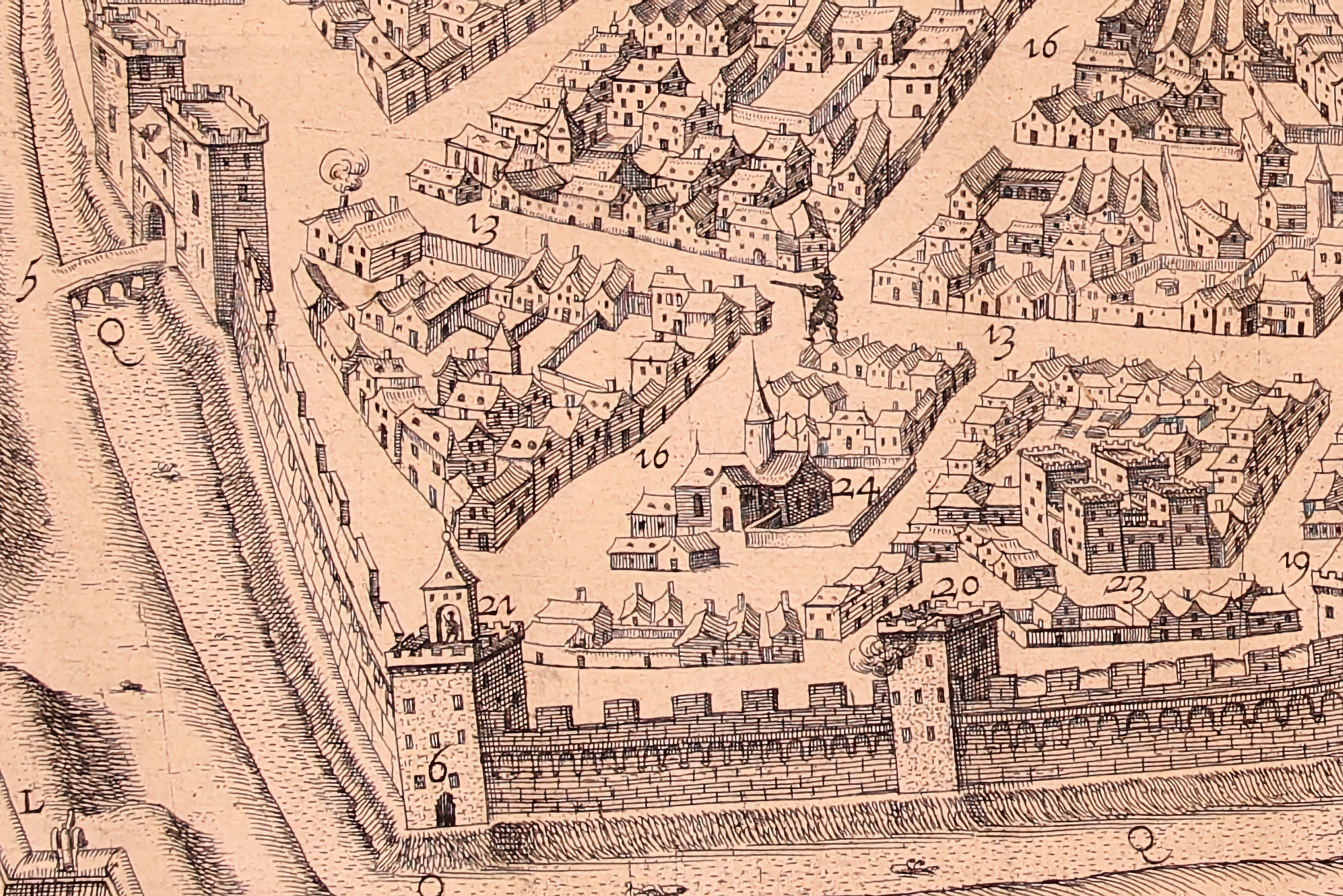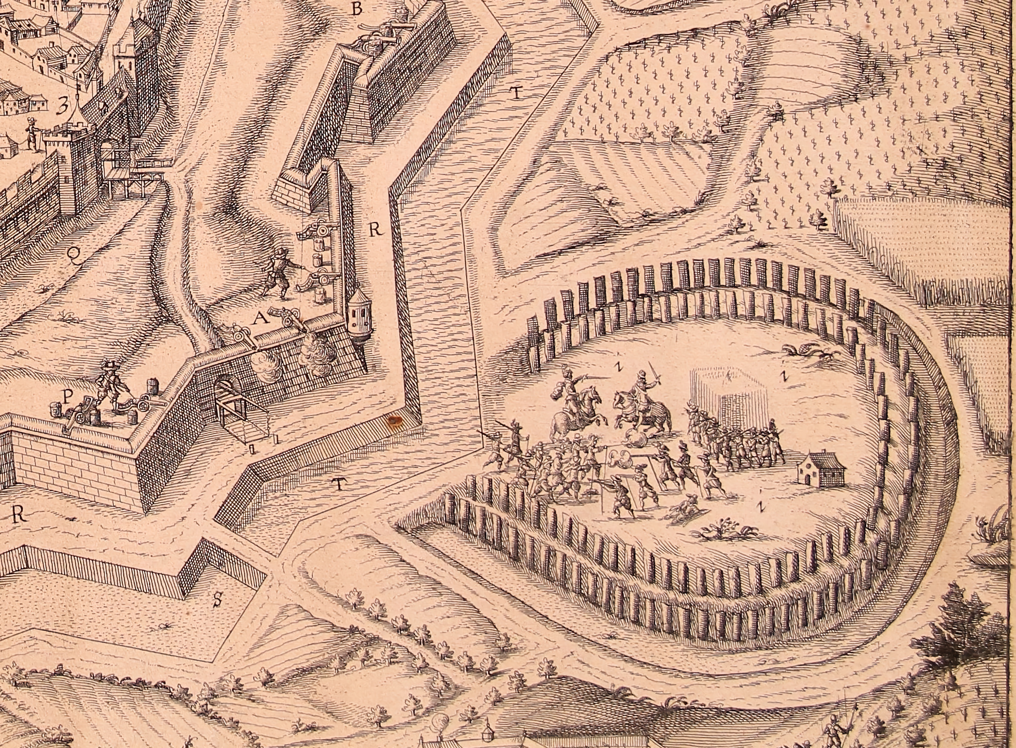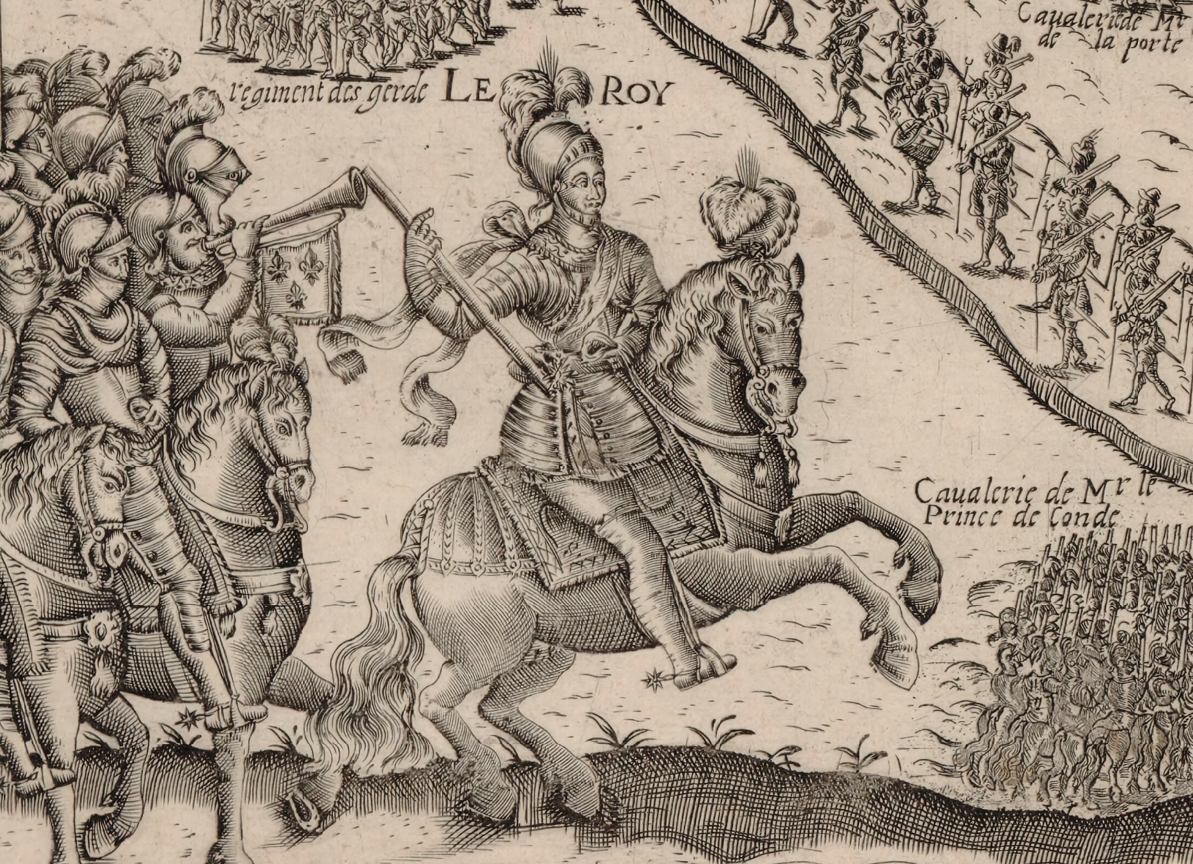 L’après-midi, Sa Majesté faisant le tour de la ville faillit à estre tué d’un coup de canon. C’eust esté un malheur extrême et une très grande affliction à ceux de dedans qui ne recognoissoient pas de loin que le Roy fust dans ceste troupe. Mais defent que ceux qui approchent de Sa Majesté empeschent qu’elle n’expose point sa personne sacrée à tant de périls.