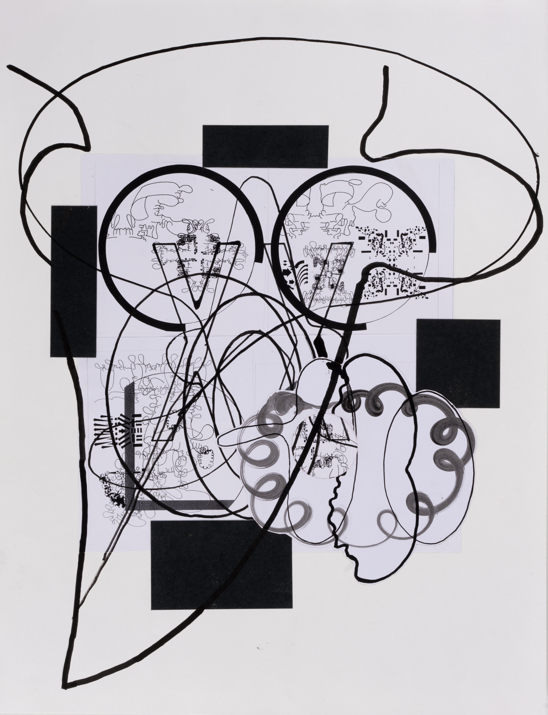 Acrylique, gouache, encre et mine de plomb sur papiers découpés et collés, 110 cm × 215 cm
