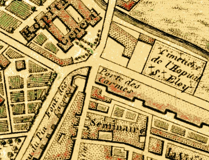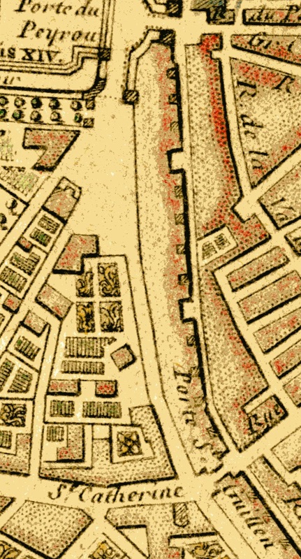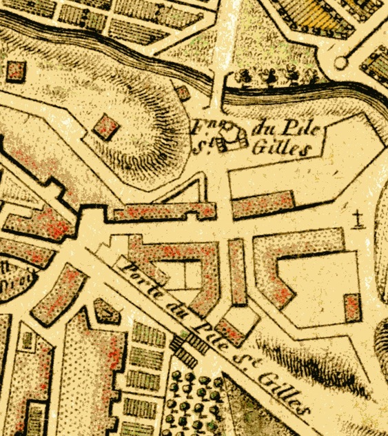 On remarque d’ailleurs sur un plan d’élévation d’une maison contre la porte de la Saunerie, la pente marquée de la Grand’Rue, qui permet un écoulement des eaux du Nord vers le Sud de la ville.
