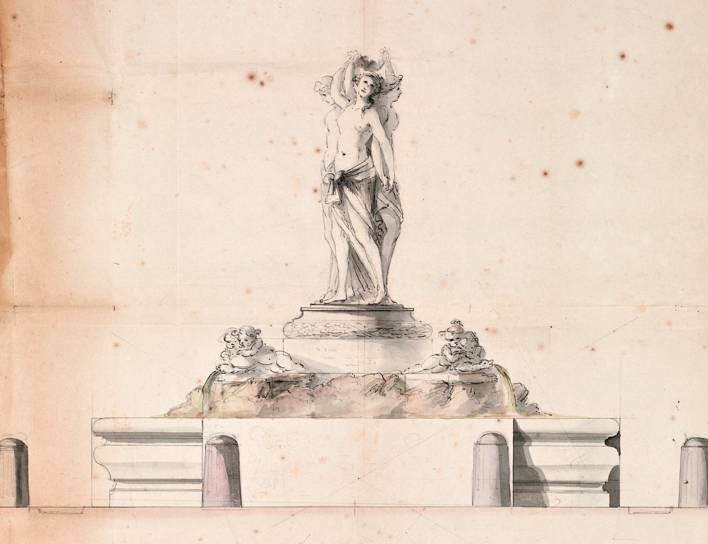 Élevation de la fontaine de la Canourgue representant les trois graces