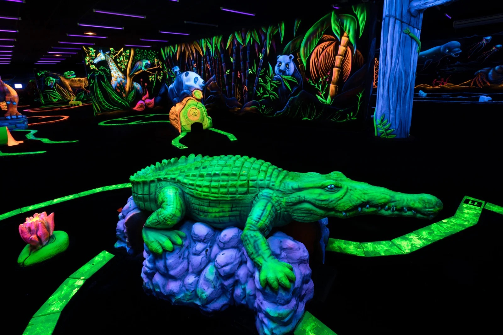 Goolfy Montpellier est votre minigolf d’intérieur à thème. Dans un cadre où dinosaures et espèces en voie d’extinction se côtoient, venez partager en famille, entre amis, entre collègues, la magie d’une partie d’où petits et grands ressortiront émerveillés.