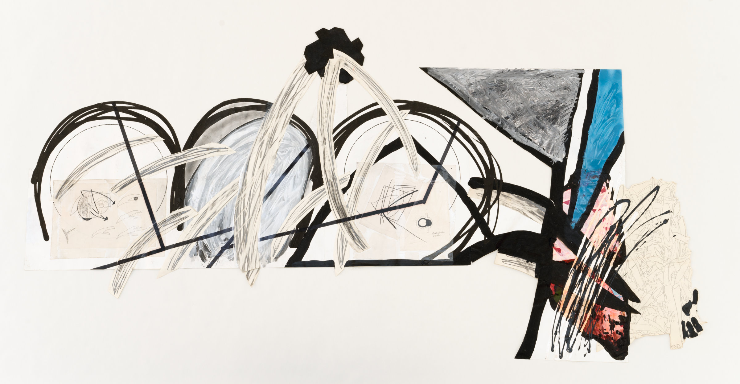 Acrylique, gouache, encre et mine de plomb sur papiers découpés et collés 110 cm × 215 cm